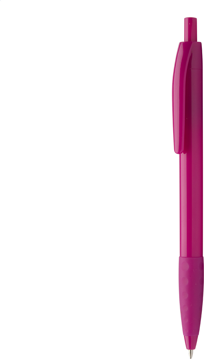 Plastové kuličkové pero se stejně barevným gumovým úchopem, s modrou náplní.