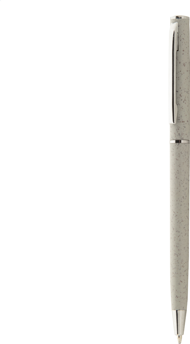 Ekologické plastové kuličkové pero z pšeničné slámy s chromovými detaily. S modrou náplní.