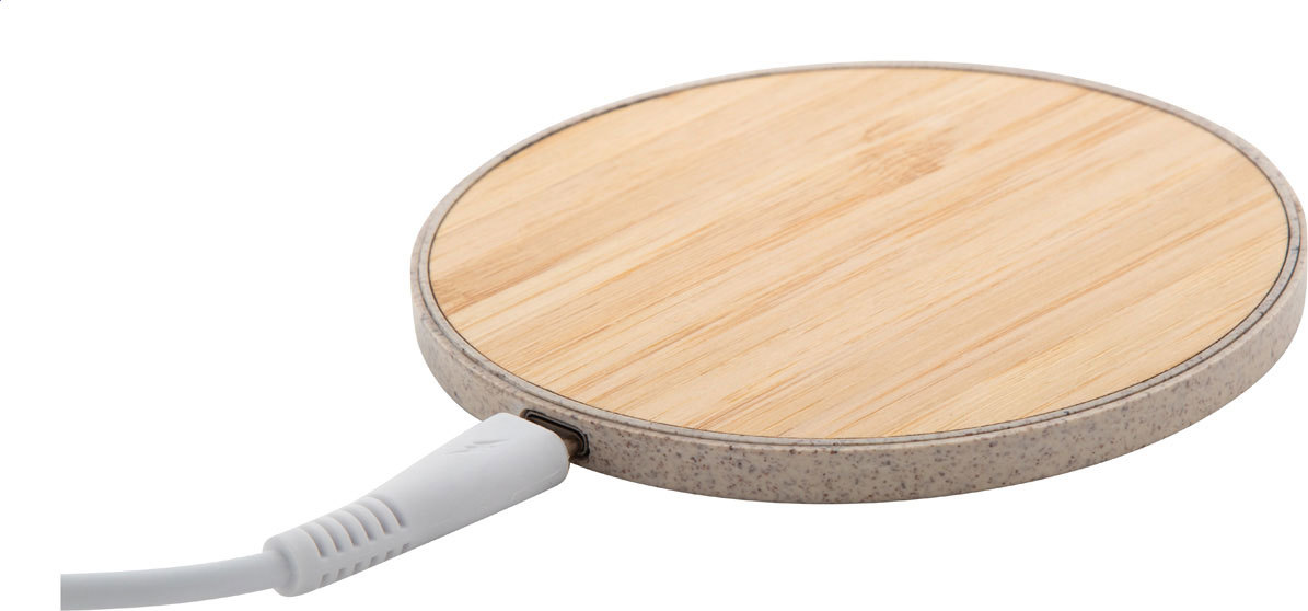 Bezdrátová rychlonabíječka (15W) v ekologickém plastovém krytu z pšeničné slámy a bambusu. Včetně USB nabíjecího kabelu.