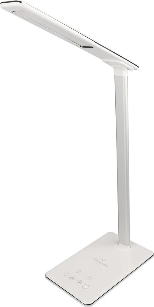 Atraktivní stolní lampa s funkcí bezdrátového (indukčního) dobíjení dle standardu Qi(Aktuálně podporovaná zařízení: HTC E9, LG NEXUS 5, Nokia 920, iPhone 8. Iphone X,Xr,Xs, Apple Watch)USB výstup pro napájení prostřednitvím kabeluProtiskluzový povrh spodní strany nohy lampyPanel složený z 48 LED (značkové čipy Epistar 4014)Dotyková tlačítka (kapacitní snímače)Příkon: 5WBarva: BíláMateriál: Hlava: PC+PMMA, Rameno: Eloxovaný hliník, Noha: ABSSvětelný tok: 250 lmTeplota barvy světla: 3000K, 4000K, 5000K, 6000K (volitelně)CRI (index podání barev): > 80Krokové ovládání jasuMožnost nastavení automatického vypnutí (60 a 90 min)Nastavení úhlu hlavy v rozsahu 180°Nastavení úhlu ramene lampy dopředu a dozadu v rozsahu 90°Životnost LED až 50 000 hodinNapájení: DC 5V/2500mA (adaptér součástí balení)Hmotnost: 690 gRozměry: noha: 120x180x18mm, rameno: 359mm, hlava: 236x50mmÚčinnost nabíjení: 75%Nabíjecí vzdálenost: #8mm