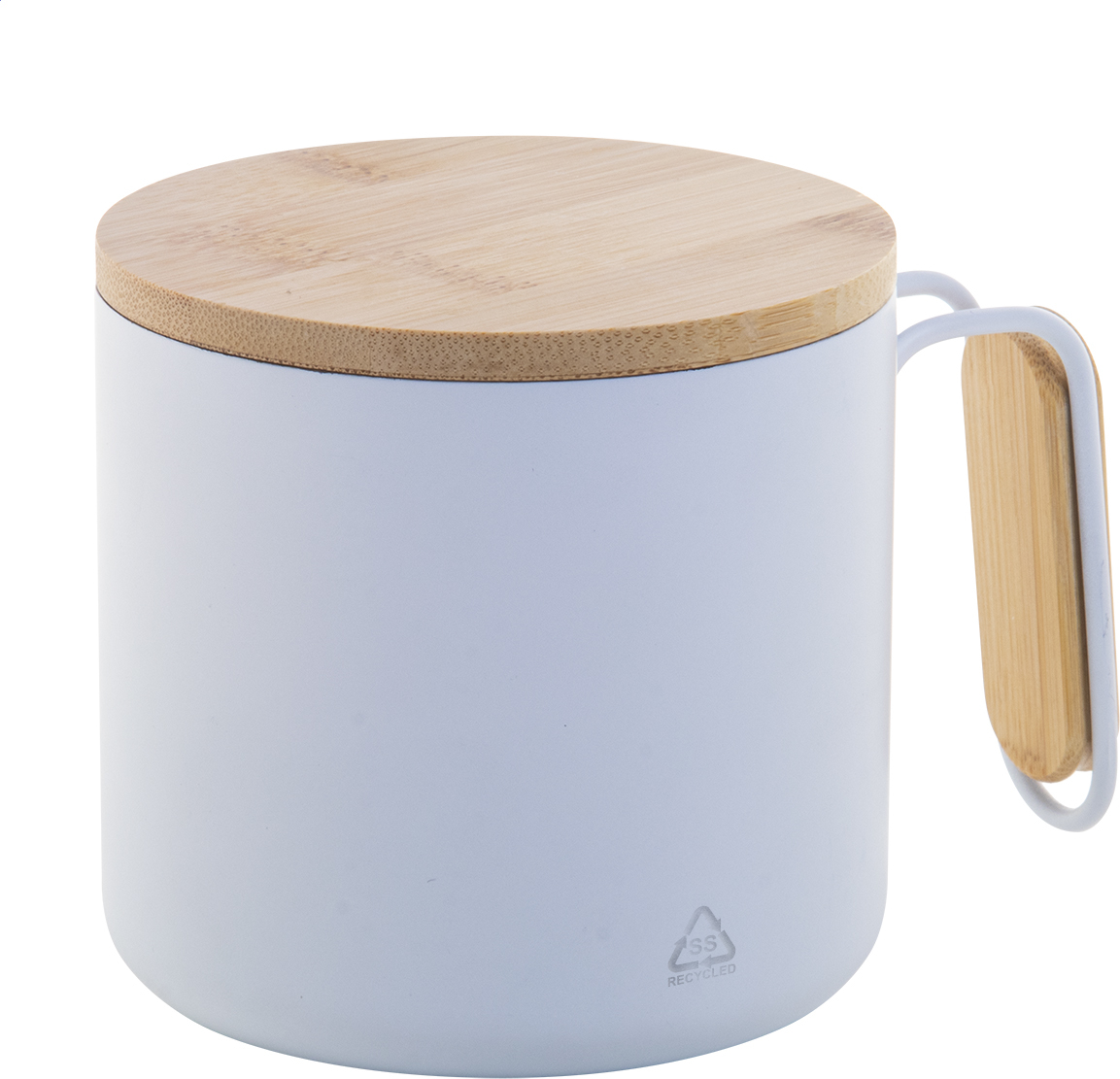 Dvoustěnný termo hrnek z recyklované nerezové oceli s bambusovým víčkem a rukojetí. 300 ml.