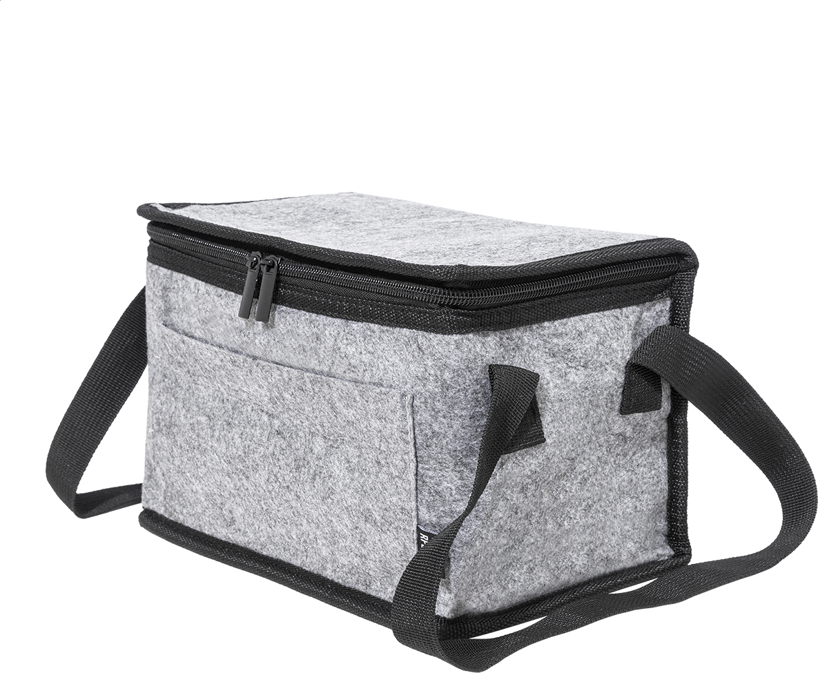 Chladicí taška na zip z RPET plsti s hliníkovým polstrováním, přední kapsou a bočními rukojeťmi. S výrazným štítkem RPET.