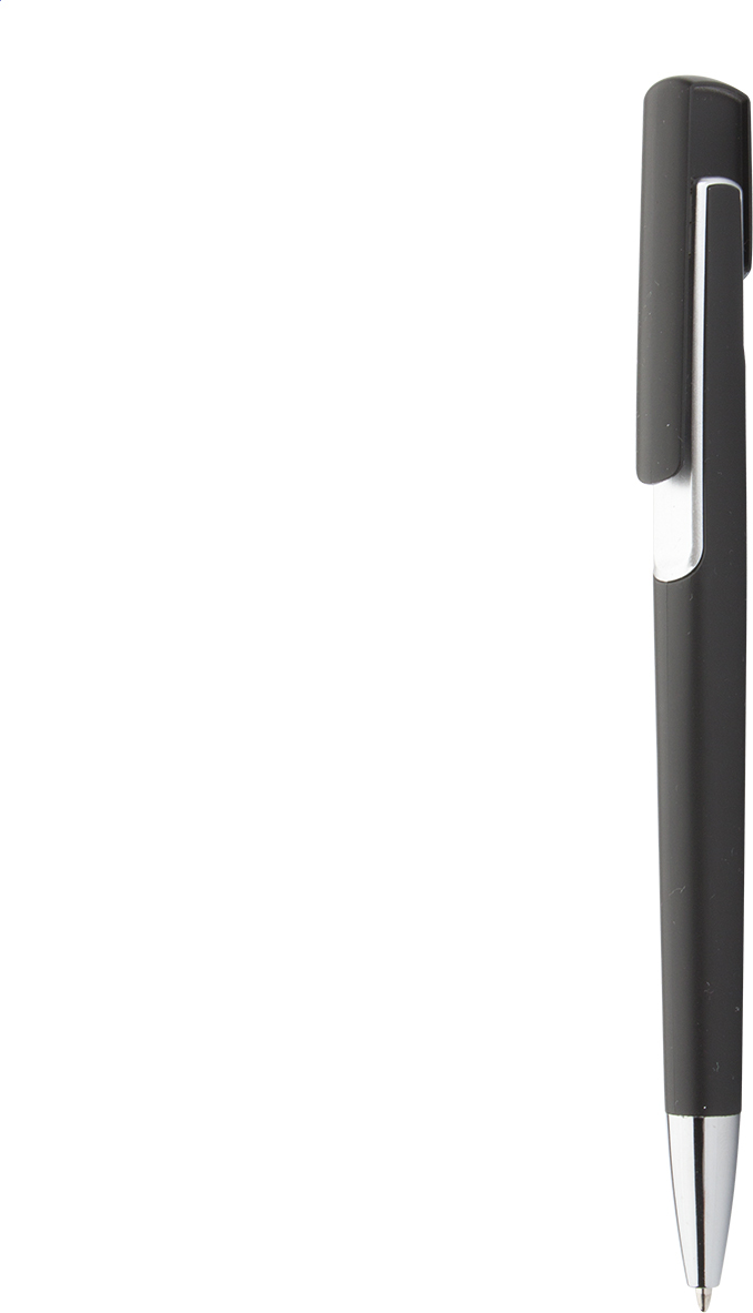 Plastové kuličkové pero s barevným zdobením a chromovaným hrotem. S modrou náplní.