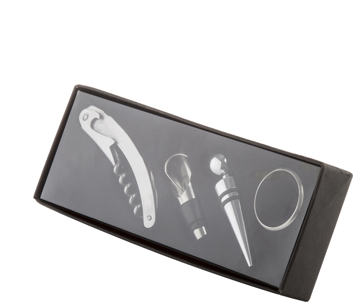 Sada na víno 4 dílná, v černé dárkové krabičce.