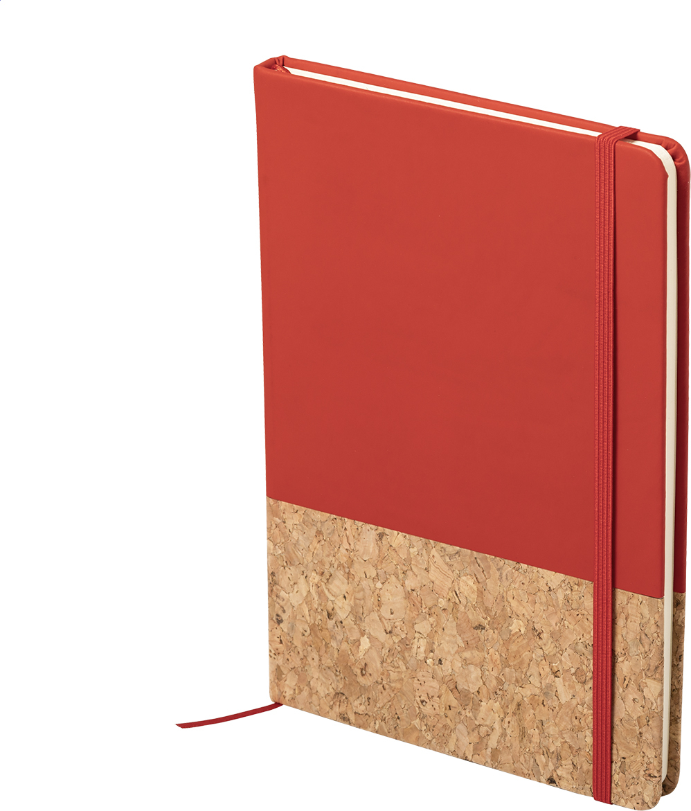 Blok A5 s deskami z přírodního korku a PU kůže, s gumičkou a 98 čistými listy.