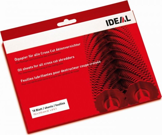 Pro čištění a údržbu skartovacího mechanismu, obzvláště vhodné pro stroje s křížovým řezem. Prodlužuje životnost stroje a udržuje mechanismus v optimálním výkonu. Prostým skartováním dojde k aplikaci speciálního oleje na kovové části skartovacích válců. Olej je uzavřen v papírové kapse, dostane se ven až při skartování. Nehrozí tak riziko znečištění oděvu obsluhy při neopatrné manipulaci. Balení obsahuje 18 listů formátu A5.