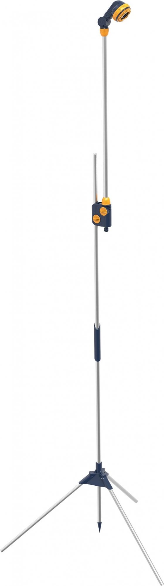 POPISPřenosná a lehká zahradní sprcha z hlíníkové konstrukce pro použití na zahradě nebo chatě.SPECIFIKACETrojnožka zajišťuje dokonalou stabilitu sprchy.Má nastavitelnou výšku od 165 - 220 cm a regulátor průtoku vody.Hlavu můžete otočit o 180 stupňů a nastavit v třech různých proudech vody - jako sprchu nebo plný či centrální proud.