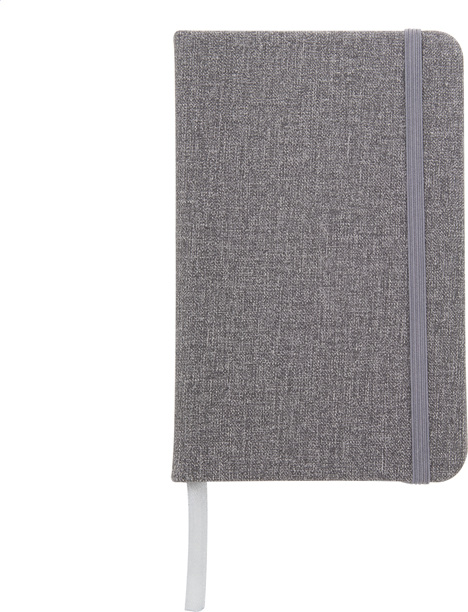 Blok A6 s deskami ze strukturované PU kůže, s gumičkou a 80 listým linkovaným blokem.