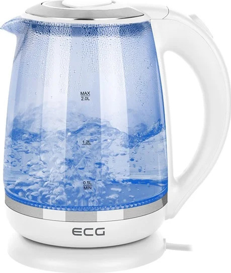Rychlovarná konvice ve skleněném provedení s příkonem 2200 W o objemu 2 litry. ECG RK 2020 je vybavena otočným středovým konektorem, ochranou proti přehřátí bez vody a omyvatelným filtrem proti vodnímu kameni.Máte někdy pocit, že je ohřívání vody nekonečné? S rychlovarnou konvicí ECG RK 2020 připravíte horké nápoje během okamžiku. Spotřebič v bílém provedení s nerezovými detaily bude zaručeně hvězdou každé kuchyňské linky. Samotná konvice je vyrobena z tvrzeného skla.Při doplňování vody jistě oceníte praktickou rysku. Nechybí ani filtr vodního kamene, který spolehlivě zachytí veškeré nečistoty. V případě potřeby je možné filtr jednoduše vyjmout a opláchnout pod proudem tekoucí vody.
