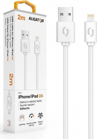 Kvalitní datové a nabíjecí USB kabely ALIGATOR s možností rychlého nabíjení 2A.Datový a nabíjecí USB kabel pro iPhone/iPad: - Vysoce kvalitní konektory- Vysoká rychlost přenosu dat- Možnost rychlého nabíjení 2A- Lightning konektor- Délka: 2m- Barva: bílá a černáMožnost výběru ze 2 barev (černá a bílá), v délce 1 nebo 2 metrů.
