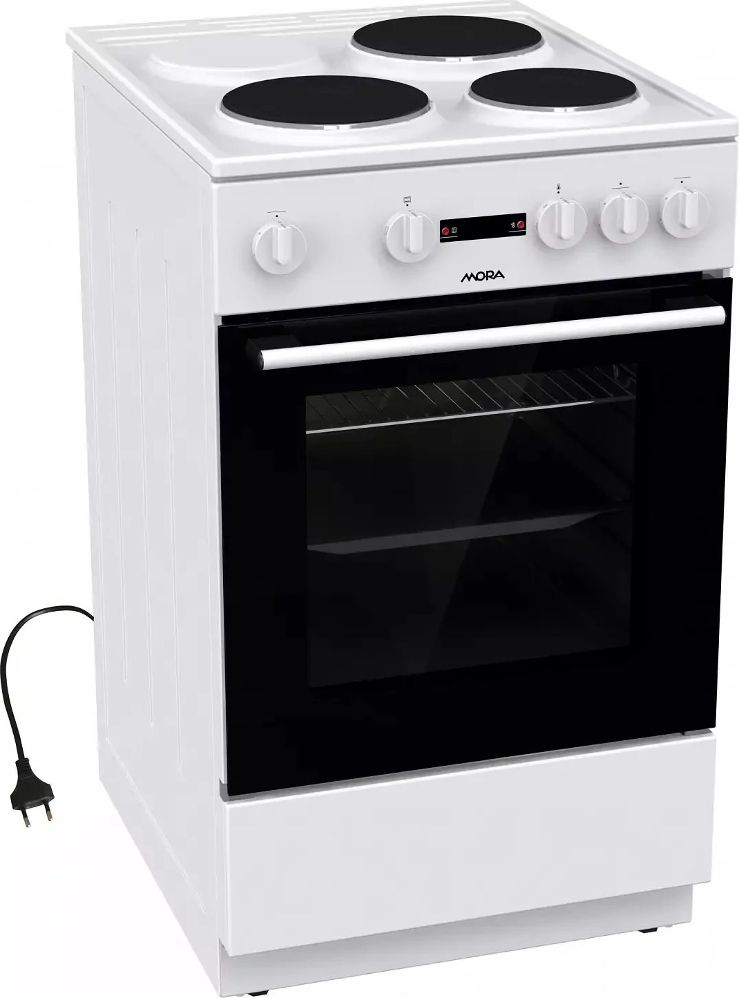 Elektrický sporák Mora E 2231 AW s klasickou troubou v bílém provedení je zařazen do energetické třídy A. Má 3 litinové plotýnky, dvě o průměru 18 cm a jednu o průměru 14,5 cm. Varné zóny se ovládají otočnými knoflíky. Trouba má objem 68 litrů a nabízí 3 způsoby ohřevu. Sporák je vybaven praktickým úložným prostorem ve spodní části, osvětlením trouby a funkcí čištění trouby ECO CLEAN. Součástí balení je také rošt a mělký plech na pečení. Elektrické napětí: 230 VMora E 2231 AWElektrický sporák Sporák Mora E 2231 AW je vybaven elektrickou varnou deskou se 3 litinovými plotýnkami a klasickou troubou v energetické třídě A a objemem trouby 68 l.levá přední O 18 cm 1,5 kWpravá přední O 14,5 cm 1 kWpravá zadní O 18 cm 1,5 kWKlasická troubaKlasická elektrická trouba má objem 68 litrů. Díky 3 způsobům ohřevu s nastavitelnou teplotou od 50 do 275 °C můžete snadno připravovat různé pokrmy. Klasická trouba má také funkci čištění Eco Clean. Ve spodní části trouby se nachází praktický úložný prostor, do kterého můžete snadno uložit příslušenství.Upozornění: Vaření je možné provádět samostatně na přední levé a pravé varné zóně bez použití pečící trouby. Při použití pečící trouby je možné vařit pouze na pravé zadní varné zóně.PARAMETRY PRODUKTUKlíčové parametry produktuVestavěný displej NeČasovač NeTřída energ.účinnosti show_tooltipAPočet programů 3Vzhled skříně volně stojícíSystém ovládání otočnéTyp varné desky LitinováCelk.vn.kapacita trouby 68 LGril NePočet hořáků/varných zón 3Typ horního povrchu LitinováPočet el.varných zón 3Umístění ovládání předníTyp trouby ElektrickýFyzické vlastnosti a barvaBarva bíláVýška 85 cmHloubka 59.4 cmHmotnost 36.5 KgŠířka 50 cmDisplay/GrafikaVestavěný displej NeDalší vlastnostiZnačka MoraFunkceČasovač NePočet programů 3Gril NeDalší parametryTřída energ.účinnosti show_tooltipAVzhledVzhled skříně volně stojícíSystém ovládání otočnéTyp horního povrchu LitinováPočet el.varných zón 3Varná deskaTyp varné desky LitinováTroubaCelk.vn.kapacita trouby 68 LTyp trouby ElektrickýVarné zónyPočet hořáků/varných zón 3Standard.hořák/varná zóna 1000 WVelký hořák/ varná zóna 1500 WErgonomieUmístění ovládání přední