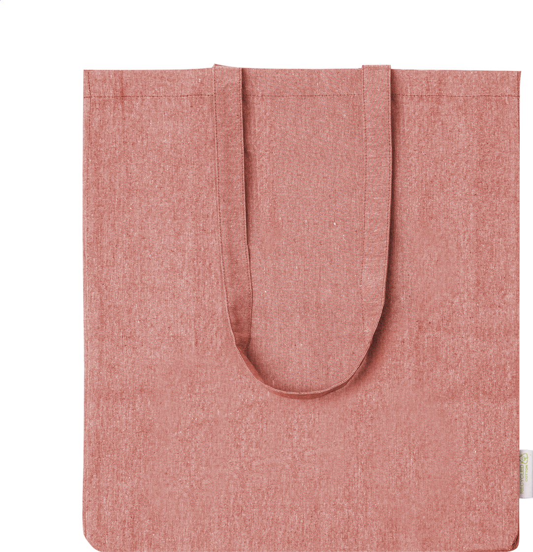 Nákupní taška z recyklované bavlny s klínem, dlouhými uchy a výrazným štítkem z recyklované bavlny. 100% recyklovaná bavlna, 140 g/m².