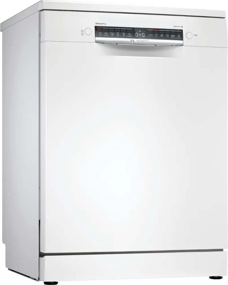 Volně stojící myčka BOSCH SMS4EMW06Ekapacita na 14 sad nádobíflexibilní uspořádánísystém AquaStoptechnologie Home Connectfunkce EfficientDryfunkce Oblíbený programhlučnost pouhých 42 dB(A)energetická třída BChytrá myčka pro moderní domácnostVolně stojící myčka nádobí Bosch SMS4EMW06E v bílém provedení je ideální volbou pro ty, kteří hledají spolehlivý a moderní spotřebič. S kapacitou 14 sad nádobí se bez problémů postará o nádobí i ve větší domácnosti. Díky energetické třídě B a nízké spotřebě vody 9 litrů na cyklus Eco 50 °C je šetrná i k životnímu prostředí.Čistota na prvním místěS myčkou Bosch se nemusíte bát bakterií a virů. Programy s teplotou 50 °C a vyšší, jako je Intenzivní 70 °C a Machine Care, účinně eliminují viry a bakterie, čímž zajišťují hygienicky čisté nádobí pro celou rodinu. A co víc, tato myčka je vybavena technologií Home Connect, která vám umožňuje ovládat a monitorovat ji na dálku prostřednictvím mobilní aplikace. Stáhněte si další mycí programy, nastavte si upozornění na konec cyklu nebo využijte Asistenta programů pro výběr optimálního programu.Tichá a flexibilníSystém košů Comfort Plus s příborovou zásuvkou a výškově nastavitelným horním košem Rackmatic vám usnadní vkládání nádobí a nabízí maximální flexibilitu. Horní koš lze snadno přenastavit až o 5 cm i při plném naložení. S hlučností pouhých 42 dB patří myčka Bosch SMS4EMW06E k nejtišším na trhu. Spusťte ji kdykoliv, aniž byste rušili své okolí.Perfektně suché nádobíJistě oceníte funkci EfficientDry, která po ukončení mycího programu automaticky pootevře dvířka. To zajistí lepší dosušení nádobí a zamezí se kondenzaci vody uvnitř myčky. Už vás nečeká žádné utírání nádobí nebo čekání na dokončení mycího cyklu vaší myčky, abyste mohli dvířka otevřít a myčku vypnout.