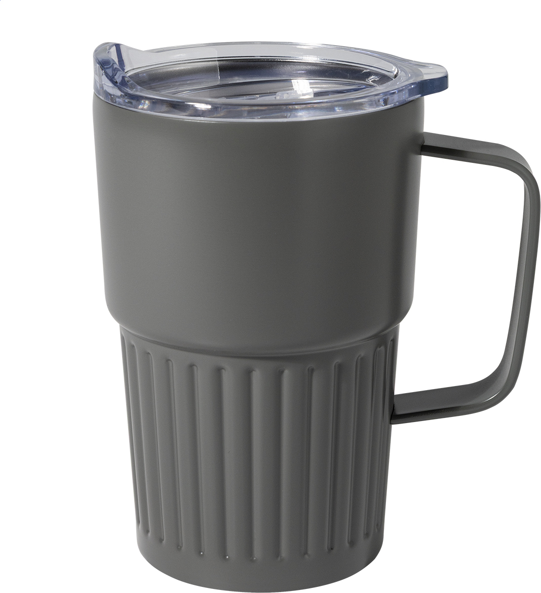 Dvoustěnný termo hrnek z recyklované nerezové oceli s víčkem na pití z ABS plastu. 470 ml.