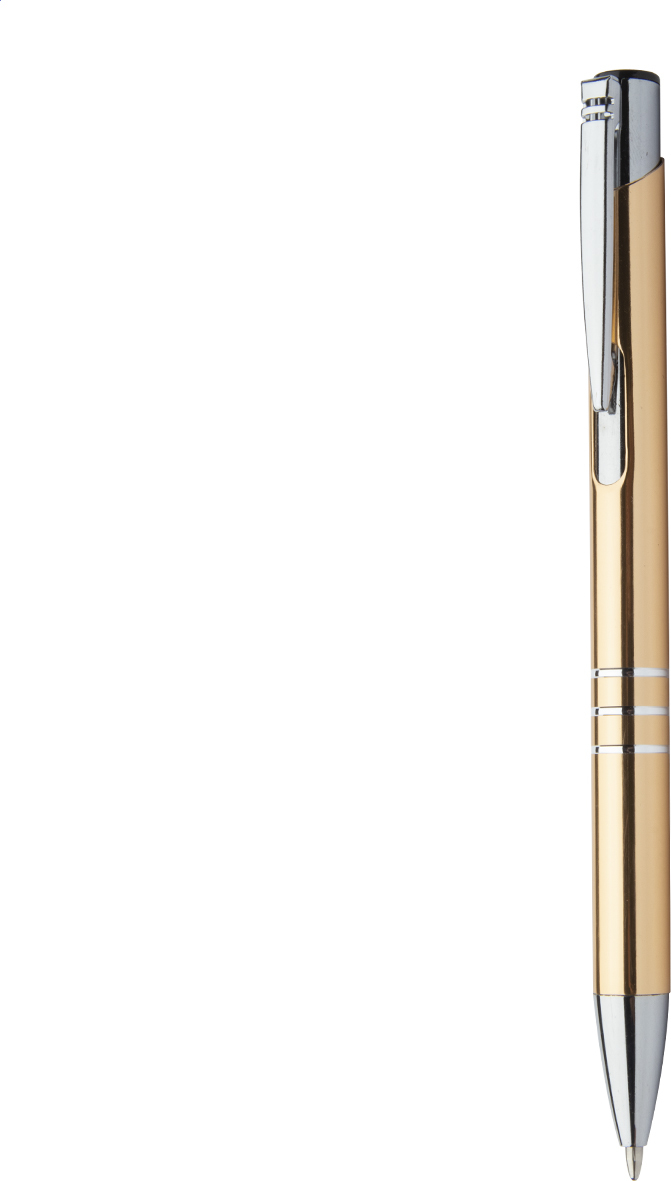Hliníkové kuličkové pero s modrou náplní.