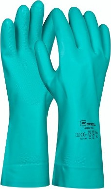 Pracovní gumové rukavice Green Tech jsou vyrobené z bavlny a nitrilu. Poskytují dobrou odolnost vůči kyselinám, louhům, tukům a olejům a jsou vysoce odolné proti roztržení.