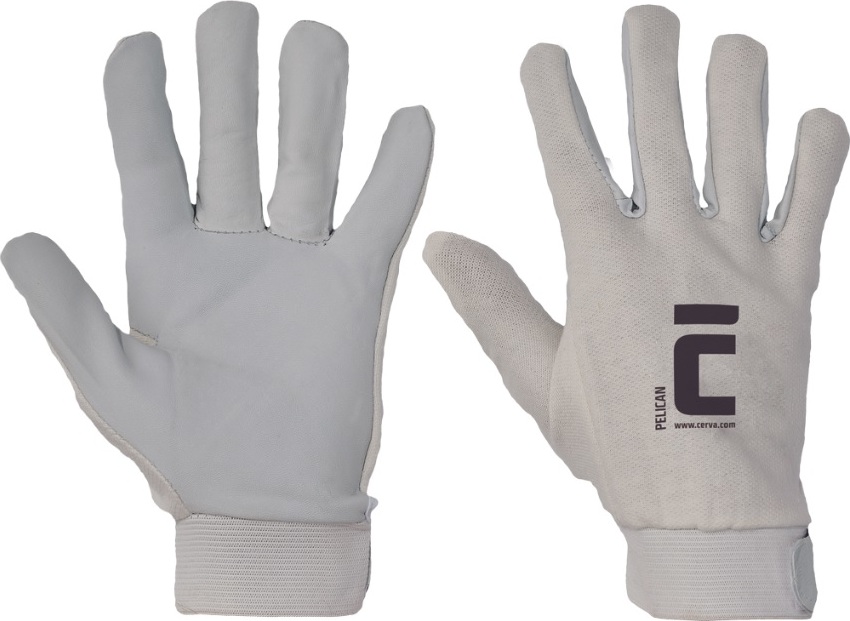 PELICAN - rukavice šité z jemné lícové kozinky v dlani, bílé bavlněné tkaniny na hřbetu a manžetou na suchý zip velikost 11