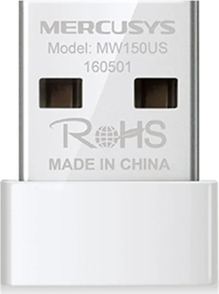 Mercusys MW150US bezdrátový Nano USB adaptér N150. Díky ultrakompaktnímu designu je model MW150US mimořádně vhodný pro použití doma i venku. Vše, co musíte udělat, je připojit tento miniaturní adaptér k USB portu počítače.Kompaktní a pohodlné řešení pro bezdrátové připojení zařízeníIdeální pro základní internetové aplikace, jako je procházení webu, e-mail a chatováníPodporuje Windows 10 / 8.1 / 8/7 / XP (32 / 64bit)Technické parametryRozměry (Š x H x V): 18,9 × 14,8 × 6,85 mmTyp antény: VnitřníRychlost signálu: 11n: až 150 Mb / s (dynamický),11 g: až 54 Mb / s (dynamický), 11b: až 11 Mb / s (dynamický)Bezdrátové standardy: IEEE 802.11n, IEEE 802.11g, IEEE 802.11bFrekvence: 2,400 - 2,4835 GHzRozhraní: USB 2.0Certifikace: CE, ROHS
