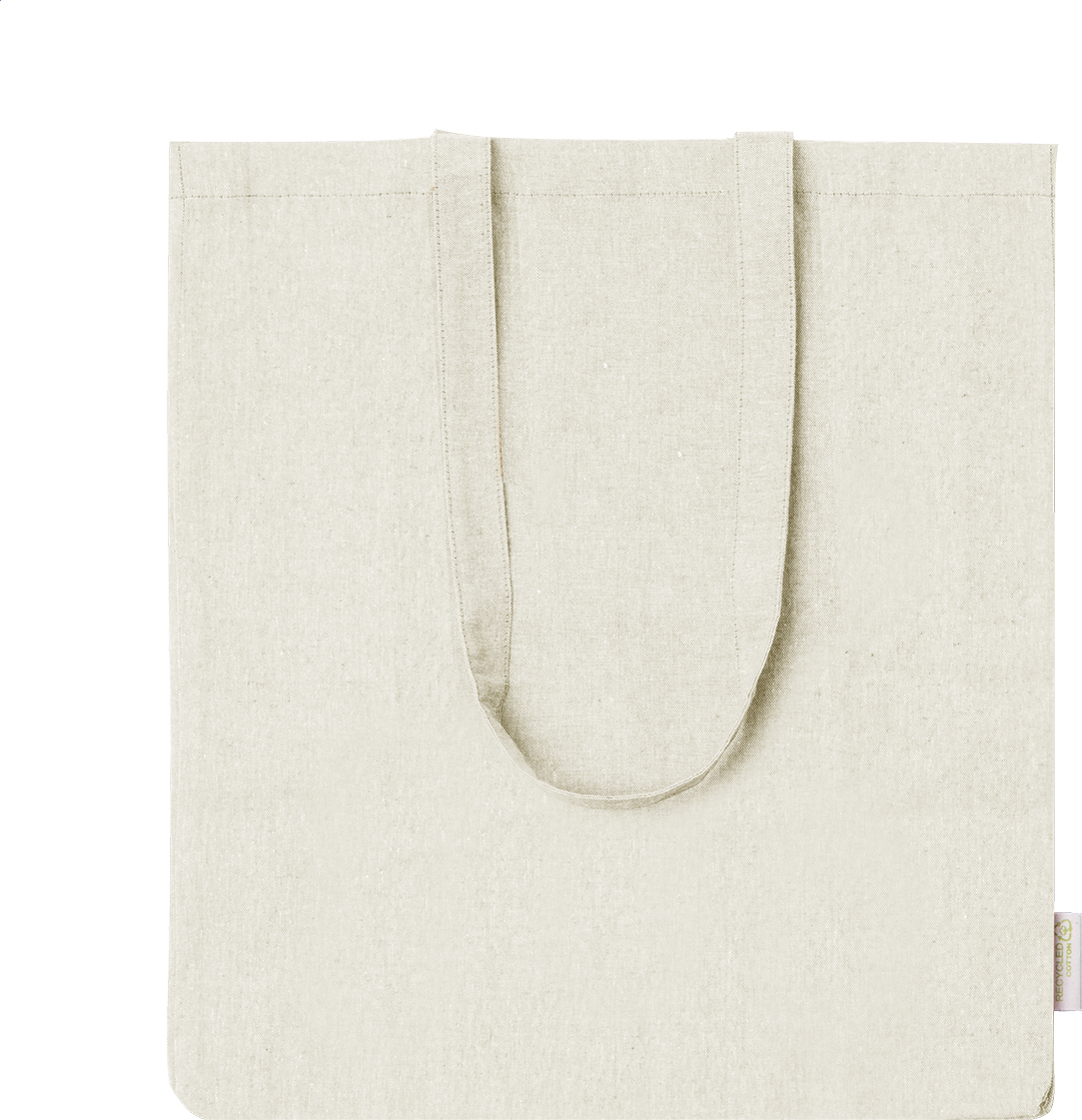 Nákupní taška z recyklované bavlny s klínem, dlouhými uchy a výrazným štítkem z recyklované bavlny. 100% recyklovaná bavlna, 140 g/m².