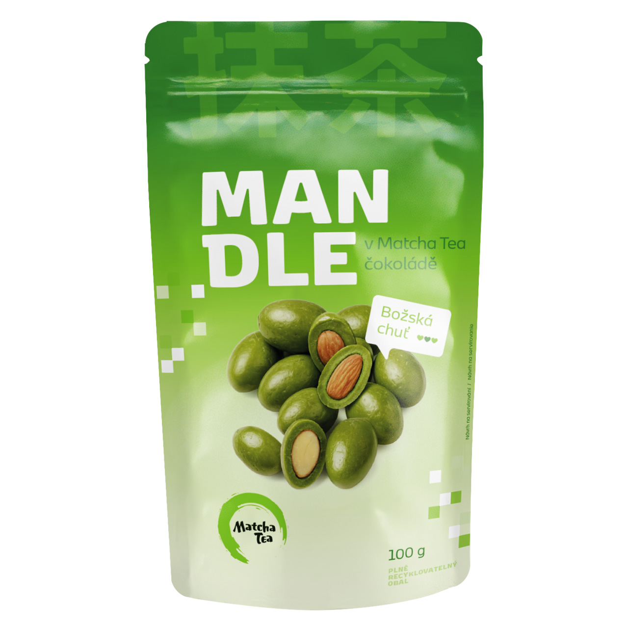 Mandle v Matcha Tea čokoládě — 100 g Pražené mandle v bílé čokoládě s pravým japonským matcha — praktické balení Japonský matcha 4 % Pražené mandle 27 % Bílá čokoláda 68 % Vyrobeno v ČR Mandle v Matcha Tea čokoládě spojují tři výjimečné chutě — pražené mandle s hlubokým oříškovým aroma, sladkou bílou čokoládu a pravý japonský zelený čaj matcha. Praktické 100g balení se hodí ke kávě, jako svačina při práci nebo na cesty. Pražení dodává mandlím výrazný toasty tón a příjemnou křupavost uvnitř krémového čokoládového obalu. Výhodné balení 300 g v praktickém tubusu Ideální na sdílení i jako dárek. Mandle v Matcha Tea čokoládě 300 g — 358 Kč → ✓ Ochutnejte také Kešu v Matcha Tea čokoládě 100 g — 119 Kč → Doporučeno pro Pražené mandle v matcha čokoládě — svačina, ke kávě i na cesty. ✔ Svačina → ✔ Ke kávě → ✔ Na cesty Chuťový profil Pražená oříškovost, sladká bílá čokoláda a jemný matcha tón v pozadí Oříškovost 8/10 Čokoláda 8/10 Sladkost 7/10 Pražená 5/10 Matcha tón 3/10 Oříškový Čokoládový Pražený Jemný matcha Co je uvnitř Tři jednoduché složky — pražené mandle, bílá čokoláda a pravý japonský matcha. ✔ Bílá čokoláda 68 % Kakaové máslo, sušené mléko a smetana, přírodní vanilkové aroma — sladký a krémový základ. ✔ Pražené mandle 27 % Celá jádra pražených mandlí — hlubší oříšková chuť s toasty tónem a příjemnou křupavostí. ✔ Japonský matcha 4 % Mleté listy zeleného čaje z Japonska — dodává charakteristický zelený tón a jemnou travnatost. ✔ Vyrobeno v ČR Přírodní vanilkové aroma, bez umělých barviv. Bez GMO. Výroba a balení v České republice. Složení a výživové údaje ▼ Složení: bílá čokoláda 68 % (cukr, kakaové máslo, sušené plnotučné mléko, sušená smetana, emulgátor: slunečnicový lecitin; přírodní vanilkové aroma), jádra mandlí pražená 27 %, mleté listy zeleného čaje 4 %, lešticí směs (lešticí látka: arabská guma; cukr, med). Alergeny: Obsahuje mléko (včetně laktózy) a skořápkové plody (mandle). Může obsahovat stopy arašídů, jiných skořápkových plodů (lískovce, vlašské, kešu, pekanové, para, pistácie, makadamie), obilovin obsahujících lepek, sóji a sezamu. Může obsahovat úlomky skořápek. Výživové údaje na 100 g Energetická hodnota 2 539 kJ / 611 kcal Tuky 45 g — z toho nasycené MK 21 g Sacharidy 38 g — z toho cukry 35 g Vláknina 5,1 g Bílkoviny 11 g Sůl 0,10 g Skladování ▼ ✓ Trvanlivost 12 měsíců od výroby ✓ Skladování V suchu, chránit před teplem a přímým sluncem ✓ Po otevření Důkladně uzavřete obal a spotřebujte co nejdříve
