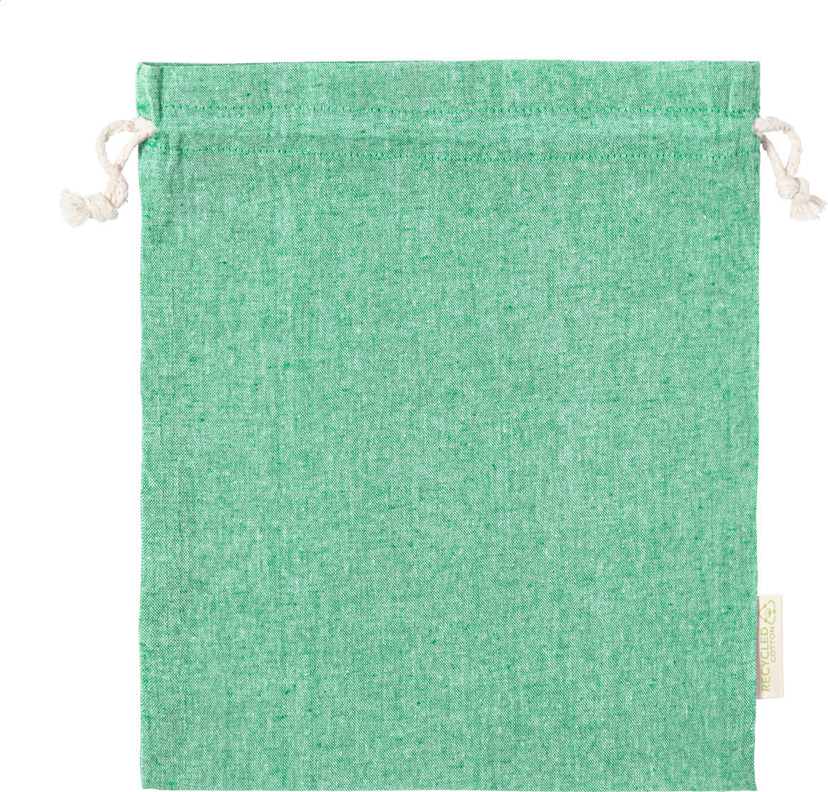 Opakovaně použitelný pytlík na potraviny z recyklované bavlny se stahování na šňůrku. 100% recyklovaná bavlna, 120 g/m².