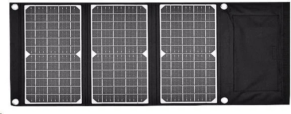 SOLÁRNÍ PANEL VIKING 30WSolární nabíjecí panel bude Váš skvělý pomocník pro všechny elektronická zařízení. Díky vysoce kvalitním monokrystalickým článkům dokáže přeměnit sluneční svit na energii efektivněji, než řada konkurentů. Je ideální na cesty, díky jeho skladnosti. Se solárním panelem VIKING 30W se již nebudete muset spoléhat na zásuvky.ŠIROKÁ KOMPATIBILITATři výstupní posty jsou kompatibilní téměř se všemi drobnými zařízeními. Stačí připojit vhodnou redukci z USB, při napájení 5V. Navíc můžete solární panel VIKING 30W, pomocí hliníkových karabin, přichytit na batoh, stan, kolo a nabíjet powerbanku, čelovku, fotoaparát, kameru a další malou elektroniku.PROČ SOLÁRNÍ PANEL VIKING 30W? Vysoká účinnost monochromatických panelů (min. 22%) Vodě odolné pouzdro, které chrání solární panely Automatický start nabíjení po připojení zařítení Díky okům po stranách polyesterového plátna, je solární nabíječka snadno přichytitelná k čemukoliv Vysoká účinnost přeměny sluneční energie, na energii elektrickouTECHNICKÉ SPECIFIKACE Výkon: 30W Typ solárního panelu: PET monokrystalický solární panel Počet solárních panelů: 3 Výstupní napětí/proud 1: USB 5V/2,4A Výstupní napětí/proud 2: DC 19V/1,5A Účinnost sol. panelu: min. 22% Hmotnost: 1,2Kg Automatický start nabíjení: ANO Smart chip pro kontrolu nabíjení: ANO Materiál: polyesterová vodotěsná tkanina Certifikace: CE, FC, Rohs Odolnost: IPX5 Rozměr zavřeného sol. panelu: 366*200*35mm Rozměr otevřeného sol. panelu: 840*366*20mm Příslušenství: Karabiny, propojovací DC kabel, sada redukcí