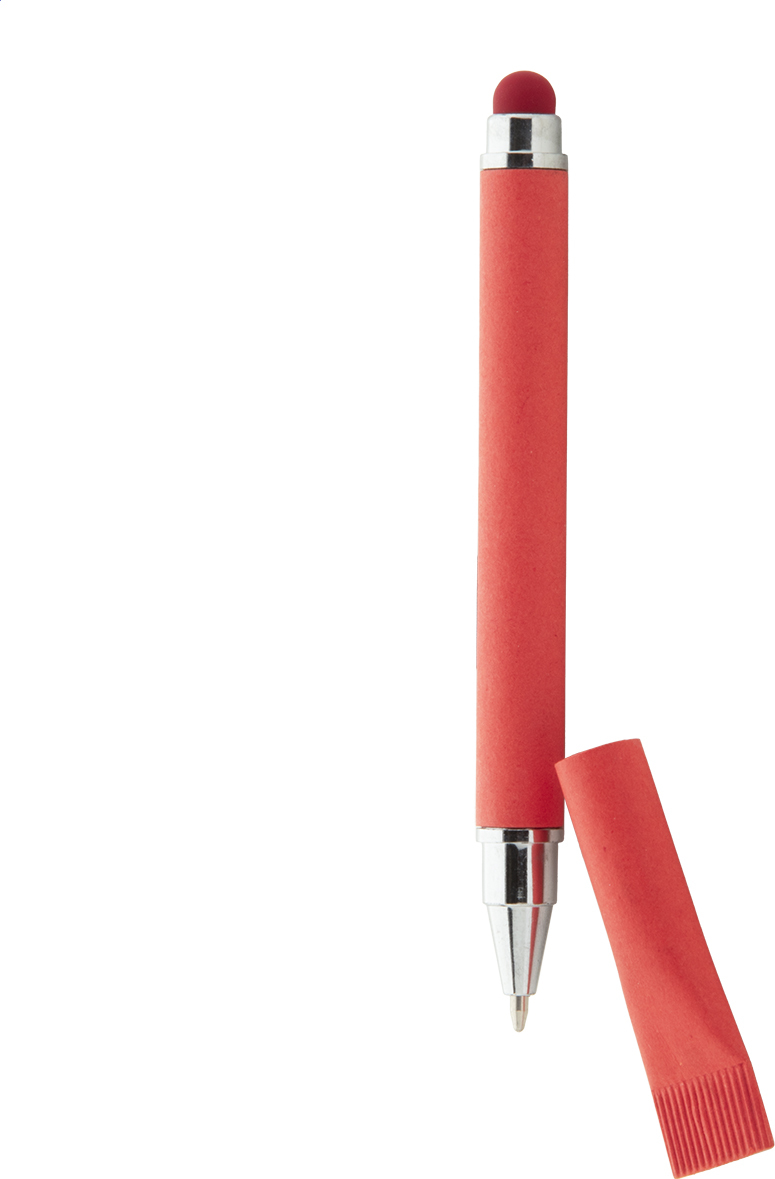 Kuličkové pero z recyklovaného papíru a dotykové pero s odpovídající barevnou krytkou. S modrou náplní.