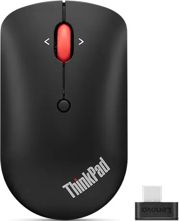 Lenovo ThinkPad USB-C Wireless Compact Mouse* obouruční kompaktní myš* modrý optický senzor* bezdrátový dongle USB-C typu plug-and-play 2,4GHz* 1x AA baterie, výdrž baterie až 18 měsíců* kompatibilní s Windows a Chrome OSTechnické parametryRozhraní/konektivita: 2,4G přes USB-C přijímačNapájení: 1x AA baterieSnímač pohybu: optický (modrý)Počet tlačítek: 4 (levé kliknutí, pravé kliknutí, rolování, DPI)Rolovací kolečko: čtyřsměrové rolovací kolečko (nahoru/dolů/vlevo/vpravo)Programovatelná tlačítka: 3 (přes software Lenovo Go Central)Rozlišení senzoru: 800, 1600, 2400dpiBarva: černáRozměry: 100x58x35mmHmotnost: 55gDoporučené požadavky na systém: volný port USB-C, Chrome OS, WindowsObsah balení:* bezdrátová kompaktní myš ThinkPad USB-C* Lenovo Go USB-C Unified Pairing Receiver* 1x AA baterie* dokumenty s informacemi o produktu a záruce