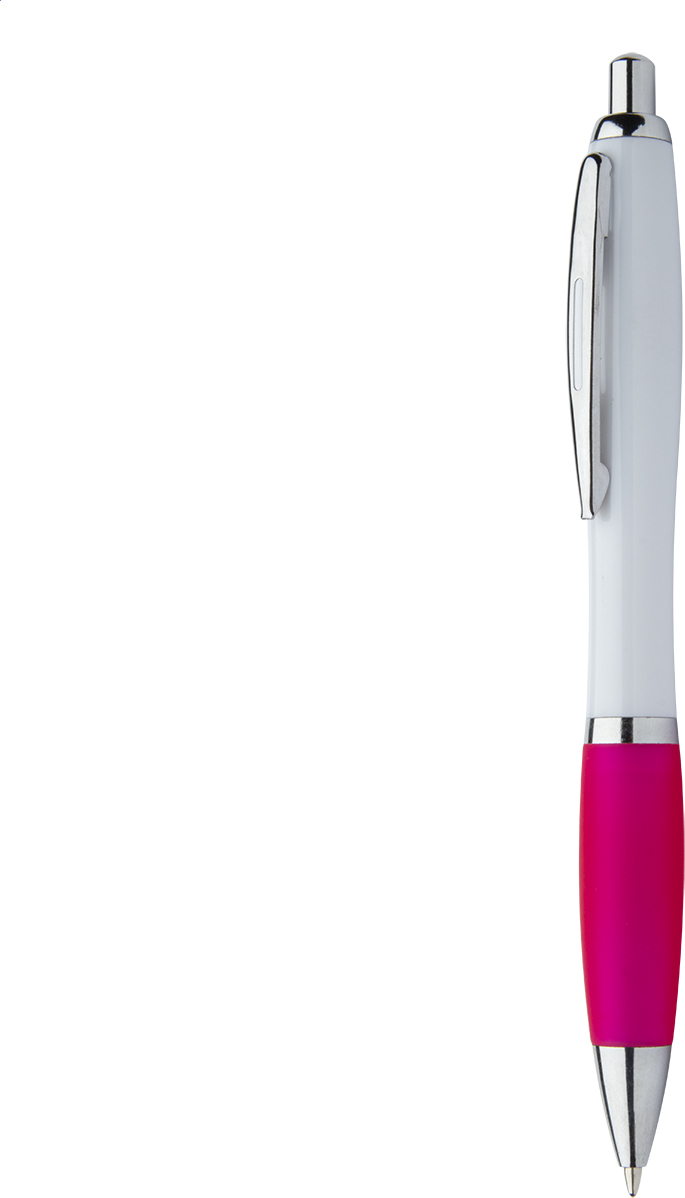 Kuličkové pero z recyklovaného ABS plastu s bílým tělem, barevným úchopem a chromovanými částmi. S modrou náplní.