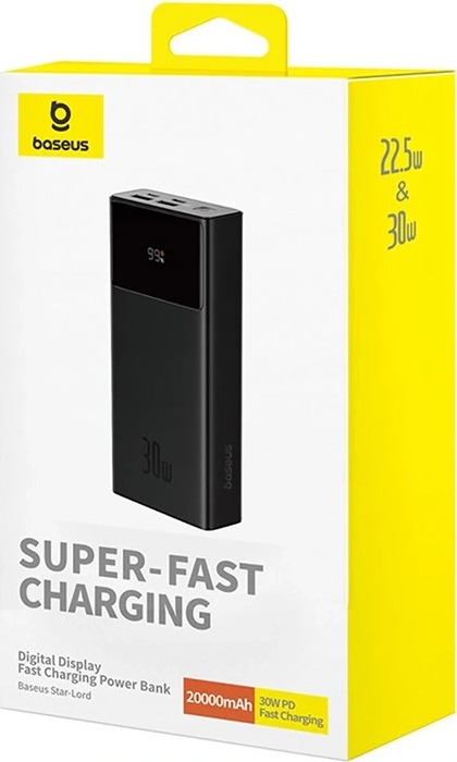 Powerbanka Baseus Star-Lord 20000mAh, 30W (černá) Nabíjejte svá zařízení rychle a bezpečně s powerbankou Baseus. Star-Lord podporuje PD 30W, takže během chvilky obnovíte energii svého iPhonu. Navíc nabízí více portů, takže k ní můžete připojit 3 zařízení současně. Vyniká kapacitou 20 000 mAh a řadou bezpečnostních prvků. Můžete ji používat i na palubě letadla. LED displej vám navíc poskytne informace o provozním stavu zařízení. Rychlé a inteligentní nabíjení Powerbanka Baseus využívá napětí 10 V/2,25 A, takže iPhone 14 nabijete na 58 %, Samsung S23 na 55 % a MacBook Air na 40 % za 30 minut. Nabízí také 2 porty USB-A a port USB-C, takže můžete nabíjet až 3 zařízení současně. Technologie BPSII zase rozděluje energii mezi připojená zařízení a přizpůsobuje proud a napětí pro rychlé a bezpečné nabíjení. Kapacita 20 000 mAh Baseus Star-Lord bude ideální pro každodenní používání. Powerbanka se vyznačuje kapacitou 20 000 mAh, která vám umožní několikanásobné nabití vašeho zařízení. K obnovení její energie navíc budete potřebovat přibližně 6-7 hodin. K tomu využijete porty micro USB a USB-C. Bezpečnost používání Používání powerbanky Baseus je zcela bezpečné. Výrobek využívá NTC čip, který monitoruje teplotu a zabraňuje přehřátí zařízení. Navíc je vybaven řadou bezpečnostních funkcí, včetně, přebíjení, nadměrného vybíjení, zkratu, elektromagnetického pole, nadproudu atd. Výrobek navíc splňuje mezinárodní bezpečnostní normy, takže si jej můžete vzít s sebou na cestu letadlem. Přizpůsobeno vašim potřebám Powerbanka je vybavena LED displejem, pomocí kterého můžete odečíst úroveň nabití baterie - pouhým pohledem. Kromě toho je výrobek kompatibilní s protokoly rychlého nabíjení SCP/FCP, PD, QC, AFC atd. Díky tomu okamžitě obnovíte energii zařízení od značek, jako jsou Apple, Huawei, Xiaomi a Samsung. Součástí balení je powerbanka Kabel USB-A na USB-C Výrobce Baseus Kód produktu P10022904113-00 Barva černá Materiál PC, ABS Hmotnost cca 461,3 g Kapacita 20 000 mAh / 74 Wh Baterie Lithium-iontový polymer Koeficient konverze energie ≥75% Vstup Micro USB 5V/2A Vstup USB-C 5V/3A, 9V/3A, 12V/2,5A, 15V/2A, 20V/1,5A Výstup USB-C 5V/3A, 9V/3A, 12V/2,5A, 15V/2A, 20V/1,5A Výstup USB1/USB2 5V/3A, 9V/2A, 12V/1,5A, 10V/2,25A (SCP) Maximální výstupní napětí 5V/3A Rozměry 155 x 69 x 29,5 mm