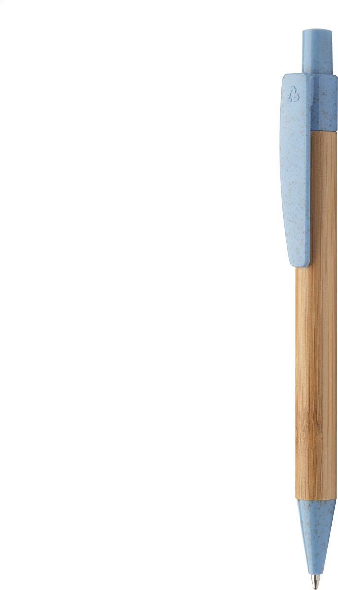 Kuličkové pero z bambusu s klipem a špičkou ze slámy, s modrou náplní.