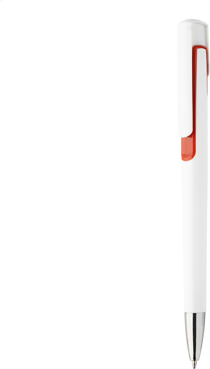 Plastové kuličkové pero s barevnými doplňky a chromovou špičkou. Dodáváno s modrou náplní.