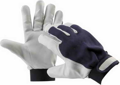 PELICAN BLUE - rukavice šité z jemné lícové kozinky v dlani, modré bavlněné tkaniny na hřbetu a s manžetou na suchý zip, určené zejména pro práce v suchém prostředí. velikost 8