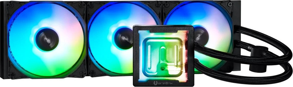 BitFenix Cube 360Vodní chladič určený pro chlazení široké škály procesorů. Vyznačuje se vysokou kvalitou, výkonem a spolehlivostí. Disponuje třemi 120 mm velkými ventilátory s ARGB podsvícením. Odolné opletené hadice jsou dlouhé 450 mm a díky dostatečně širokému průměru zaručují plynulý průtok chladicí kapaliny. Chladič je dodáván s teplovodivou pastou BitFenix TF10 Extreme pro maximální odvod generovaného tepla.ZÁKLADNÍ SPECIFIKACEUrčení chladiče: pro CPUTyp chladiče: vodníPodporované sockety: Intel LGA 1150, 1151, 1155, 1200, 1700AMD AM4, AM5Velikost ventilátoru: 3× 120 mmRychlost ventilátoru: až 2000 ot./minHlučnost: max. 36 dBADélka hadice: 450 mmRozměry: 397 × 120 × 32 mmBarva: černá