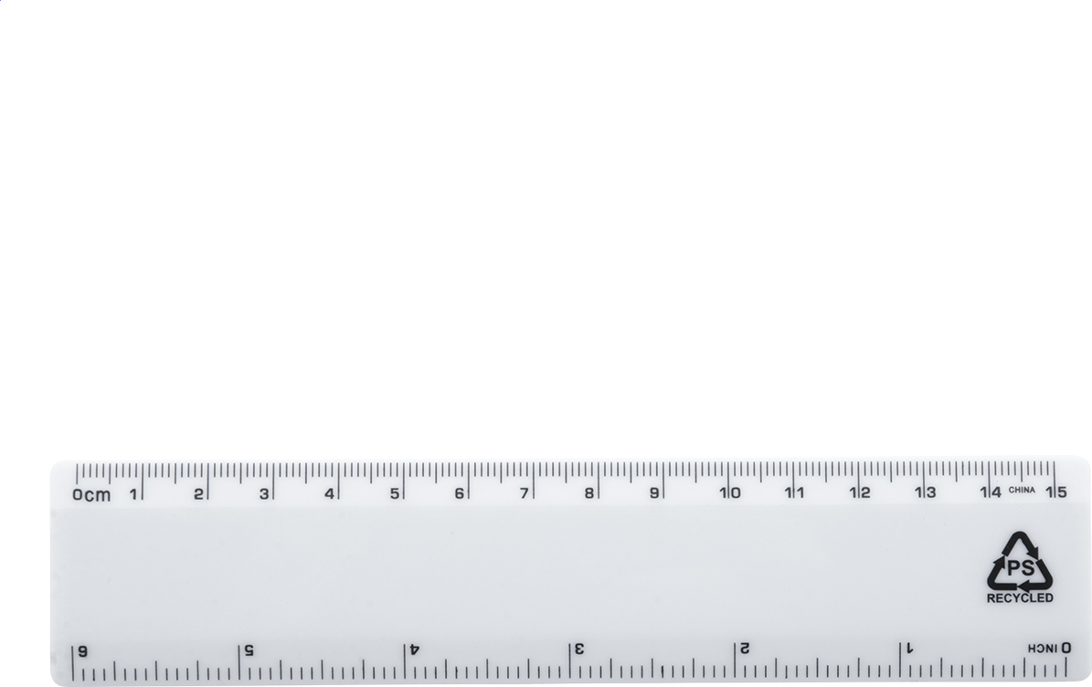 Pravítko z recyklovaného plastu PS, 15 cm.
