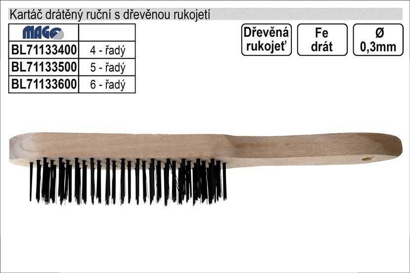 MAGG Kartáč drátěný ruční ocelový dřevěný 5 řadý
