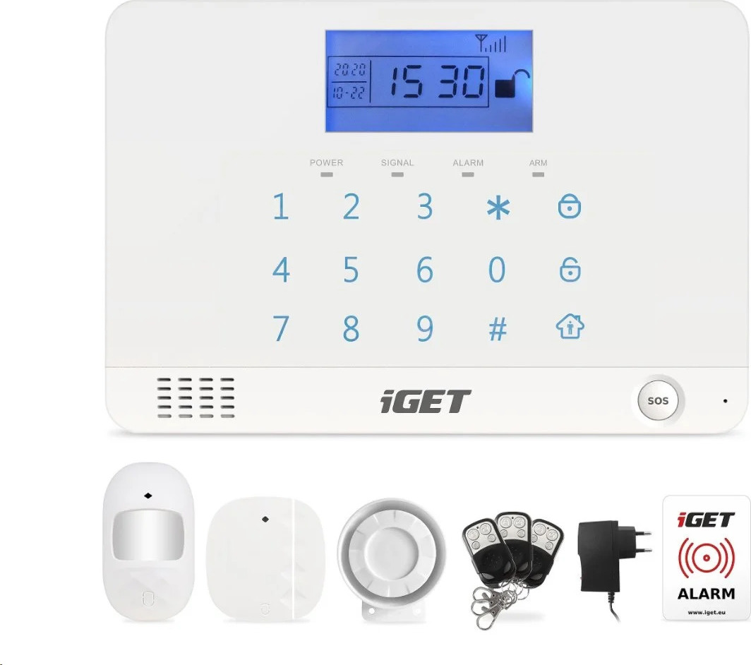 Jedná se o bezdrátový alarm s jednoduchou instalací a ovládáním. Pro napojení detektorů k centrální jednotce není nutné roztahování drátů ani složité nastavování. Detektory jsou bezdrátové a napájené bateriemi, a v základním setu spolu již všechny komunikují. Přidání dalších detektorů je otázkou několika minut. Centrální jednotka obsahuje slot na SIM kartu, pomocí které informuje o poplachu - SMS a volání. Stačí pouze zasunout SIM kartu a zadat čísla, na která mají být zprávy odeslány nebo realizováno telefonování. Pokud by došlo k odpojení elektrického proudu, centrální jednotka obsahuje baterii s výdrží až 8 hod. a tudíž je objekt stále zabezpečen.Víceúčelový bezdrátový GSM alarm iGET SECURITY M3B je ideální pro zabezpečení veškerých budov - domů, bytů, chat, garáží, obchodů, skladů, apod. Bezdrátové detektory mají dosah až 80m. Stačí pouze vložit baterie a umístit detektor v prostoru. Aktivace a deaktivace alarmu je rovněž snadná a rychlá. Buď je možné klasické vložení kódu na klávesnici centrální jednotky, použití bezdrátové klíčenky, nebo pomocí aplikace iGET ALARM. Kovové odolné klíčenky slouží jako dálkové ovladače alarmu. Je možné aktivovat/deaktivovat alarm, aktivovat SOS poplach, a aktivovat Režim Doma jen pro některé zóny. Veškerá komunikace bezdrátových detektorů a klíčenek je kódována, komunikace je tak zabezpečena proti případným útokům.Aplikace iGET ALARMPro ovládání alarmu je určena aplikace volně dostupná na Google Play a iOS marketu. Pomocí této aplikace je možné provést přehledně kompletní nastavení. Aplikace je v českém a anglickém jazyce.Bezdrátový přenosPro napojení detektorů k centrální jednotce není nutné roztahování drátů ani složité nastavování. Detektory jsou bezdrátové a většina napájená bateriemi. Přidání dalších detektorů je otázkou několika minut. Centrální jednotka obsahuje slot na SIM kartu, pomocí kterého může zaslat zprávu o poplachu.Bezdrátové detektory mají dosah až 80 m, některé i 200 m. Stačí pouze vložit baterie/zapojit a umístit detektor v prostoru. Aktivace a deaktivace alarmu je rovněž snadná a rychlá, buď použitím bezdrátové klíčenky, klávesnice nebo mobilní aplikace. Odolné klíčenky slouží jako dálkové ovladače alarmu. Je možné aktivovat/deaktivovat alarm, zapnout poplach, a zapnout speciální režim Doma jen na některé zóny.Způsob komunikace alarmu s aplikací/telefonemAlarm iGET SECURITY M3B je připojen k GSM síti. Mobilní telefon uživatele musí být pro ovládání připojen k GSM kdekoliv na světě. Aplikace iGET ALARM generuje příkazové SMS s kódem který se pak odesílá přímo na SIM kartu v alarmu. Dle daného příkazu a správného kódu pro ovládání alarm vykoná daný povel.Hlavní parametry:· Aplikace iGET ALARM zcela zdarma bez paušálního poplatku v češtině a angličtině.· Elegantní design, dotyková klávesnice, přehledný modře podsvícený LCD displej.· Centrální jednotka informuje o stavu pomocí zobrazení na displeji, SMS, a telefonováním.· Nastavení až 6ti telefonních čísel, na které bude alarm při poplachu telefonovat a zprostředkovávat tak dění v objektu.· Nastavení až 3 telefonních čísel, na které alarm zasílá SMS při poplachu a stav alarmu.· Centrální jednotka obsahuje záložní baterii až na 8 hod. provozu, o odpojení/zapojení základního napájení ze sítě 230V alarm informuje pomocí SMS zprávy.· Obsahuje reproduktor a mikrofon, díky tomu může uživatel zatelefonovat z alarmu jako z klasického telefonu.· Připojení až 7mi drátových a 99ti bezdrátových detektorů současně k centrální jednotce.· Možnost aktivace/deaktivace/režim doma/SOS pomocí aplikace.· Nastavení až tří časových skupin aktivací a deaktivací alarmu.· Každý detektor je k alarmu připojen bezdrátově pomocí speciálního kódování, spárování dalších detektorů s alarmem je rychlé a jednoduché.· Pro každou zónu je možné nastavit zdali má dojít ke zpoždění před vyvoláním poplachu. Délku zpoždění je také možné nastavit.· Nastavení vlastního času pro: zpoždění před aktivací alarmu, zpoždění před vyvoláním poplachu, délku zvuku sirény.· Další možnosti nastavení: zvuky hlavní jednotky, zvuk a SMS při aktivaci/deaktivaci alarmu, zvuk sirény při aktivaci/deaktivaci, zvuk sirény při ovládání klíčenkou, SMS při nízkém stavu baterie atd.· Možnosti pojmenování zón: Plyn, Dveře, Hala, Okno, Balkon, Hraniční, SOS, Požární.· Možnosti nastavení jednotlivých zón: aktivní, režim doma, neaktivní, zpoždění.- Rozměry hlavní jednotky alarmu M3B jsou: délka 19cm, výška 13cm, hloubka 2,7 cm.- Příkon při klidovém stavu je do 2,5 Watt a při siréně je do 3 WattObsah balení:· 1 x centrální zabezpečovací GSM jednotka, hlavní ovládací panel pro veškeré nastavení a kontrolu systému· 3 x dálkové ovládání – klíčenka, pro rychlou aktivaci a deaktivaci alarmu bez zadávání kódu· 1 x bezdrátový magnetický detektor pro zajištění dveří nebo oken, hlídá jejich otevření· 1 x bezdrátový pohybový PIR detektor pro detekci pohybu v místnosti· 2 x varovná nálepka pro výstrahu na zabezpečený objekt· 1 x vnitřní siréna s hlasitostí 110 dB· 1 x napájecí adaptér pro centrální jednotku (ta obsahuje i dobíjenou baterii s výdrží 8 hod.)· 1 x podrobný uživatelský manuál v českém, slovenském a maďarském jazyce