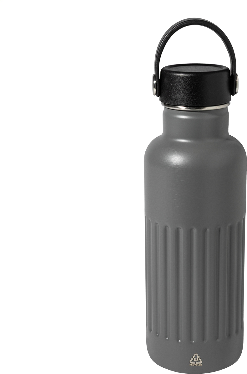 Dvoustěnná vakuově izolovaná láhev z recyklované nerezové oceli s PP plastovým přepravním víčkem. 500 ml.