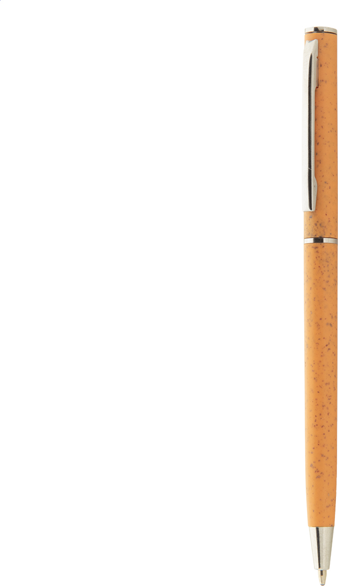 Ekologické plastové kuličkové pero z pšeničné slámy s chromovými detaily. S modrou náplní.