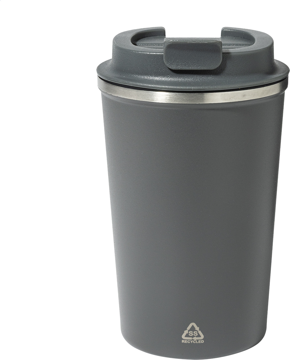 Dvoustěnný termo hrnek z recyklované nerezové oceli s víčkem na pití z PP. 350 ml.