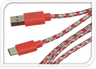 Kabel USB-A na USB-C, 3 m, 2A, opletený červený
