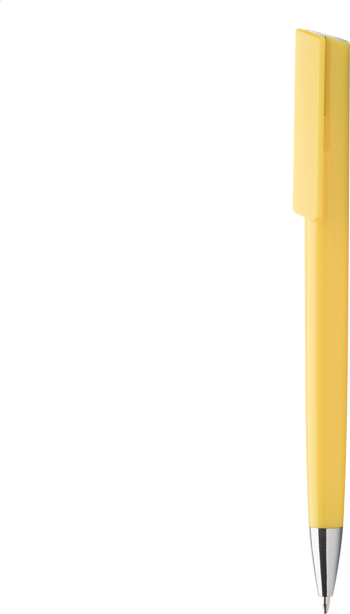 Plastové kuličkové pero s chromovou špičkou a vrškem, s modrou náplní.