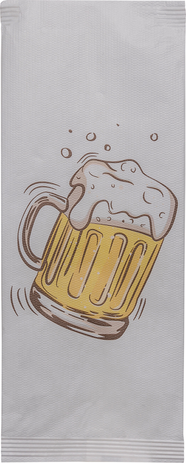 NOVINKA! Vysoce kvalitní zpevněná a uzavřená papírovo/polyethylenová kapsička na příbory Infibra New Beer s vloženým bílým dvouvrstvým ubrouskem 38x38cm, rozměr kapsičky 25x11cm