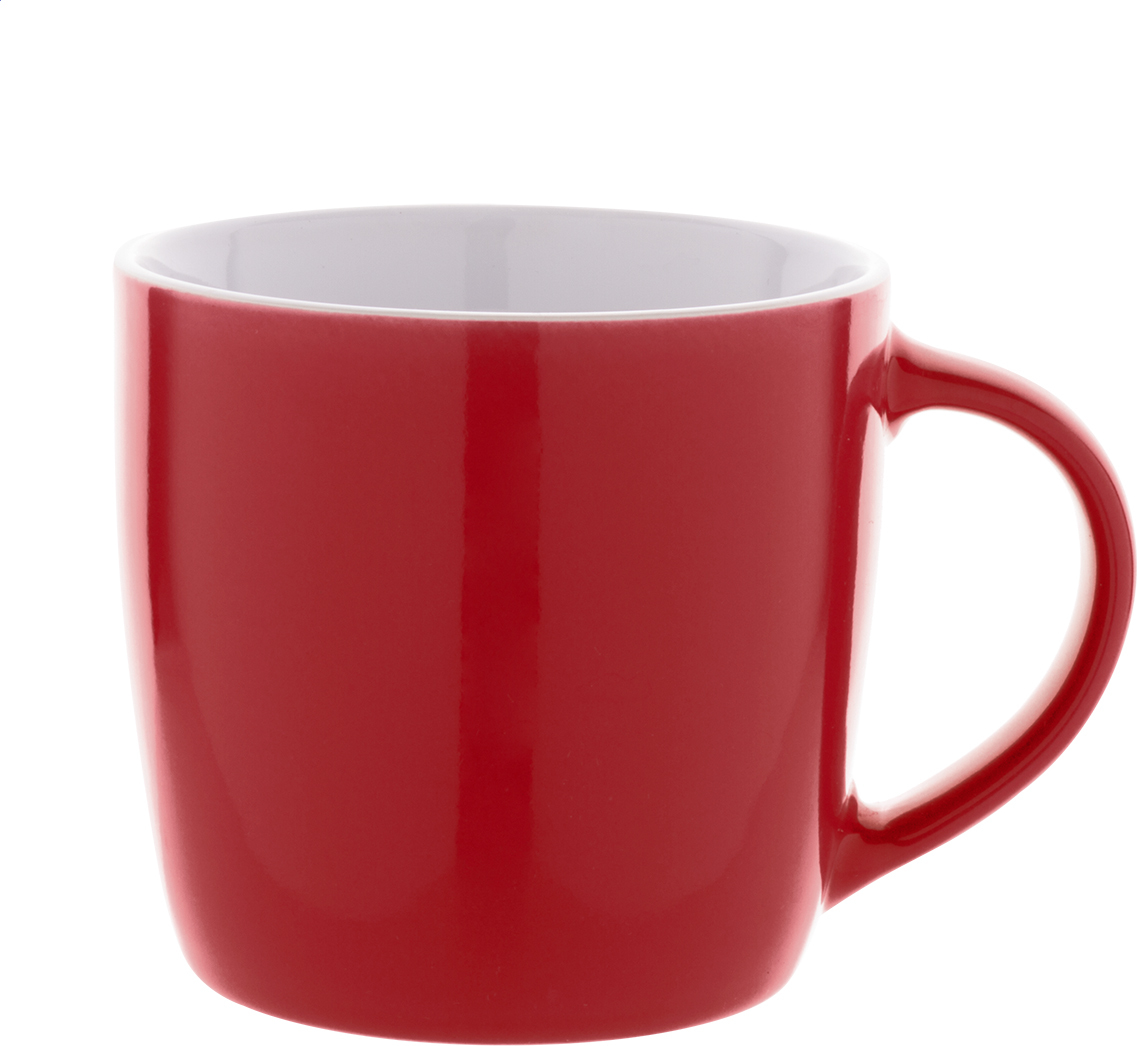 Vysoce kvalitní barevný keramický hrnek s bílým vnitřkem, 370 ml. V kraftové papírové krabici.