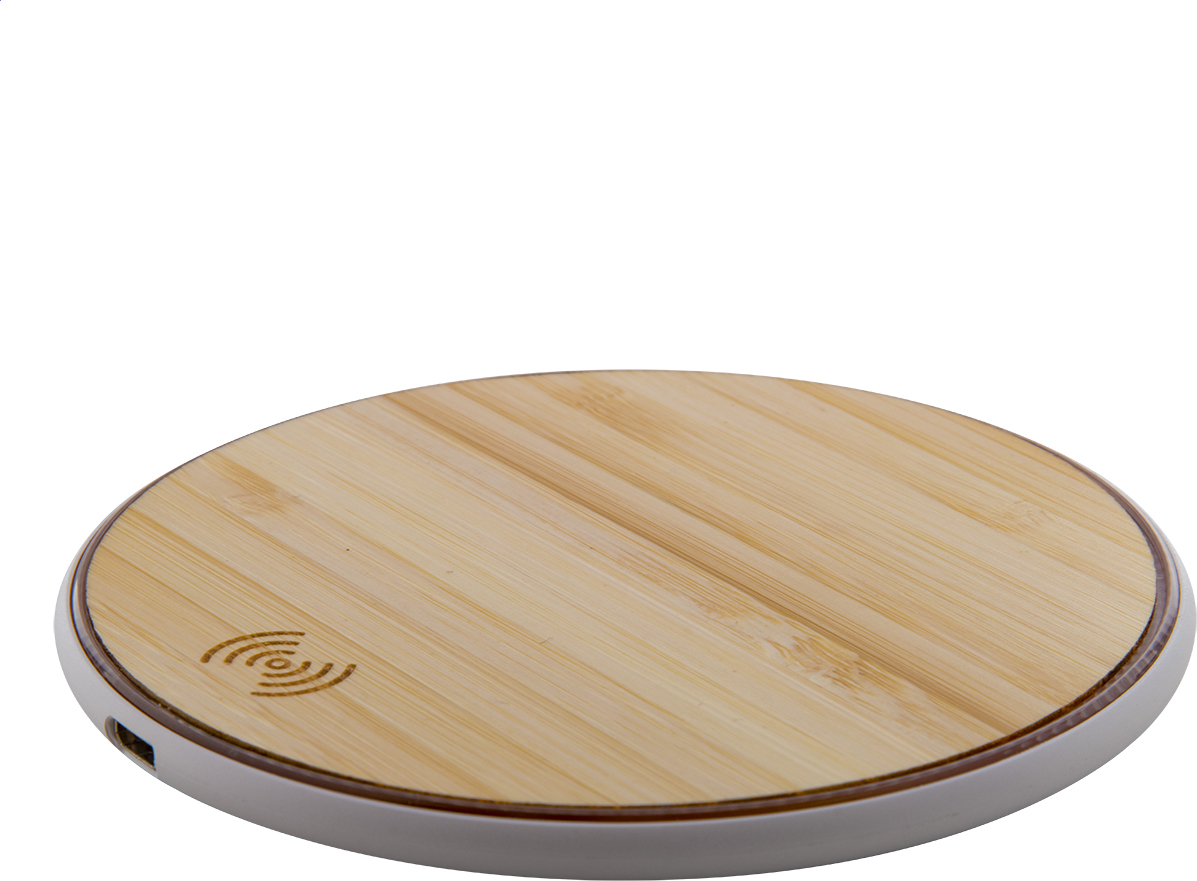 Bezdrátová nabíječka (10W) na mobil s bambusovým krytem. Vč. USB nabíjecího kabelu.