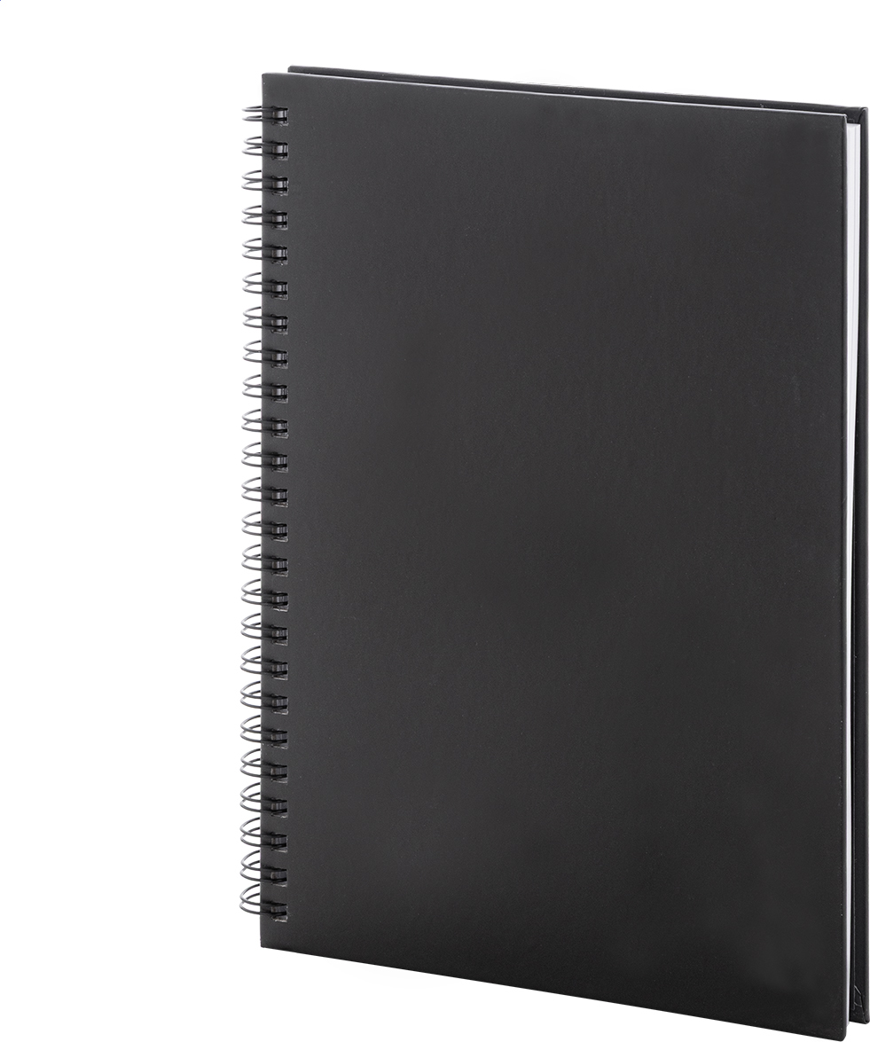 Spirálový blok A5 s 80 linkovanými listy z recyklovaného papíru.
