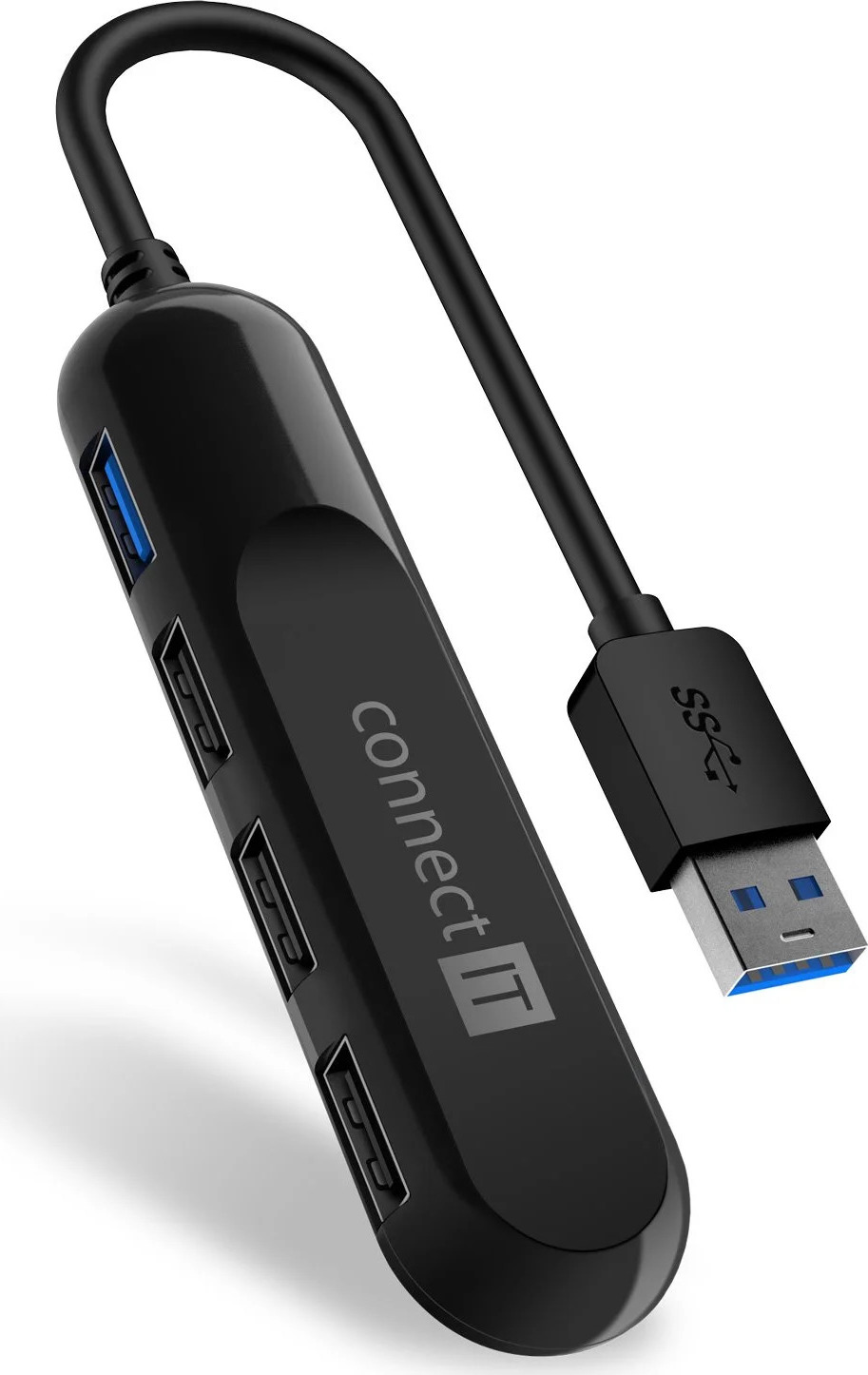 USB hub---Prakticky tvarovaný USB hub pro připojení až 4 USB periferií. Umožní připojení dalších periferií jako jsou např. myš, klávesnice, MP3 přehrávač, scanner, tiskárna, digitální fotoaparát, externí pevný disk, flashdisk atd.---Jedná se o výborný doplněk běžných stolních počítačů i přenosných notebooků, které nemají dostatek vlastních USB portů. Díky svým miniaturním rozměrům se jedná o videální příslušenství na cesty jako příslušenství k notebookům.Pro připojení k počítači je určeno rozhraní USB-A 2.0. Napájený je z USB portu počítače nebo notebooku, tudíž nepotřebuje žádné další napájení.K hubu můžete připojit jakékoli zařízení standardu USB 3.0, 2.0 nebo 1.1 jako jsou myš, klávesnice, MP3 přehrávač, scanner, tiskárna, digitální fotoaparát, externí pevný disk, flashdisk atd.---Rozšiřuje USB-A port o další čtyři USB-A portyUrčen pro domácí i kancelářské profesionální použití1x USB-A port 3.2 gen. 1 s přenosovou rychlostí 5 Gbps3x USB-A port 2.0 s přenosovou rychlostí 480 MbpsSnadná instalace Plug & Play bez nutnosti instalace a stahování ovladačů (stačí pouze připojit k USB portu počítače nebo notebooku)Podpora připojení 2.5" disků bez nutnosti přídavného napájeníKompatibiliní s operačními systémy Windows XP/Vista/7/8/10/ a Mac OS X (funkce produktu, které nejsou podporovány Mac OS X, nemusí fungovat správně)Délka kabelu (bez konektoru): 10 cmRozměry bez kabelu (d × š × v): 98 x 24 x 18 mmHmotnost: 30,6 gMateriál: ABS plastBarva: černá