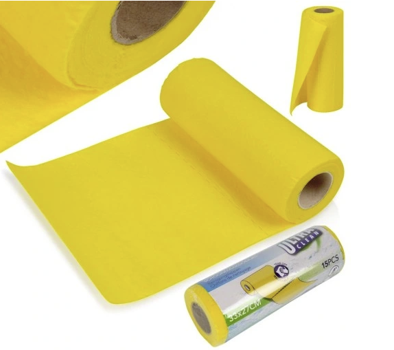 Kuchyňské utěrky v roli 33x27 cm 15 ks. Sada 15 kuchyňských utěrek - Sada patnácti kuchyňských utěrek pro čištění a údržbu různých povrchů. Každý hadřík má rozměr 33 x 27 cm. Odolné a savé - Utěrky jsou vyrobeny z 80% viskózy a 20% polyesteru ve žluté barvě. Utěrky jsou velmi savé a odolné. Univerzální použití - Hadříky lze používat mokré, jsou pak měkké a jemné na dotek. S jejich pomocí dokážeme efektivně vyčistit jakýkoli povrch bez poškrábání. Snadné odtržení na roli - Ubrousky jsou umístěny na roli, takže je lze snadno odtrhnout, což zajišťuje pohodlí a rychlý přístup během používání. Opakovaně použitelné - utěrky jsou opakovaně použitelné a lze je prát v ruce. To jim umožňuje zůstat čerstvé a hygienické po dlouhou dobu. Sada patnácti kuchyňských utěrek pro univerzální použití. Utěrky jsou užitečné při čištění, jsou extrémně savé a snadno se používají. Utěrku lze použít mokrou i suchou. Hadříky jsou univerzální a vhodné na čištění různých povrchů, např. oken, nábytku nebo koupelen. Užitečné v každé domácnosti, kanceláři nebo autě. Originální produkt holandské značky Ultra Clean. Vyrobeno podle evropských norem.