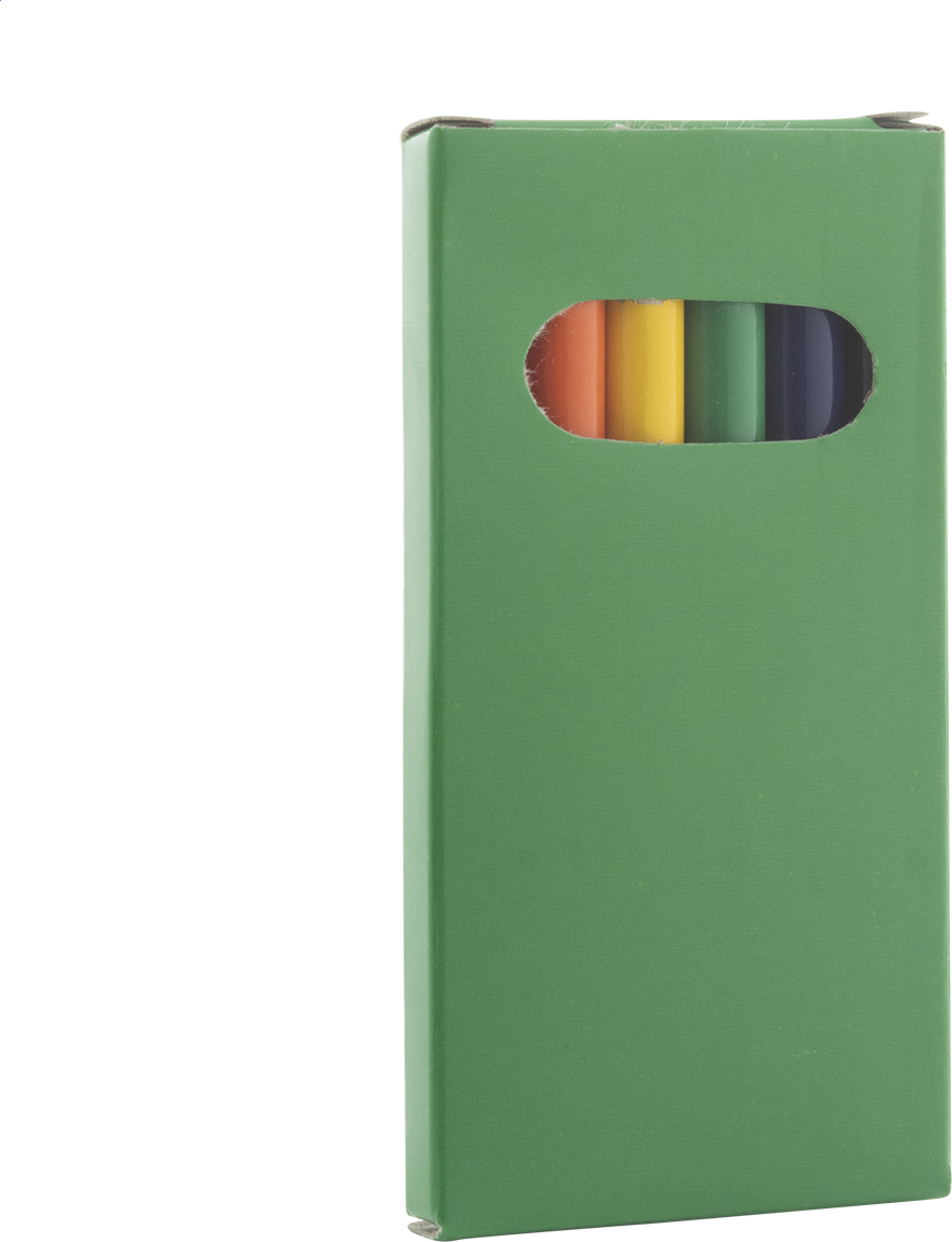Dřevěné pastelky (6 ks) v barevné papírové krabičce.