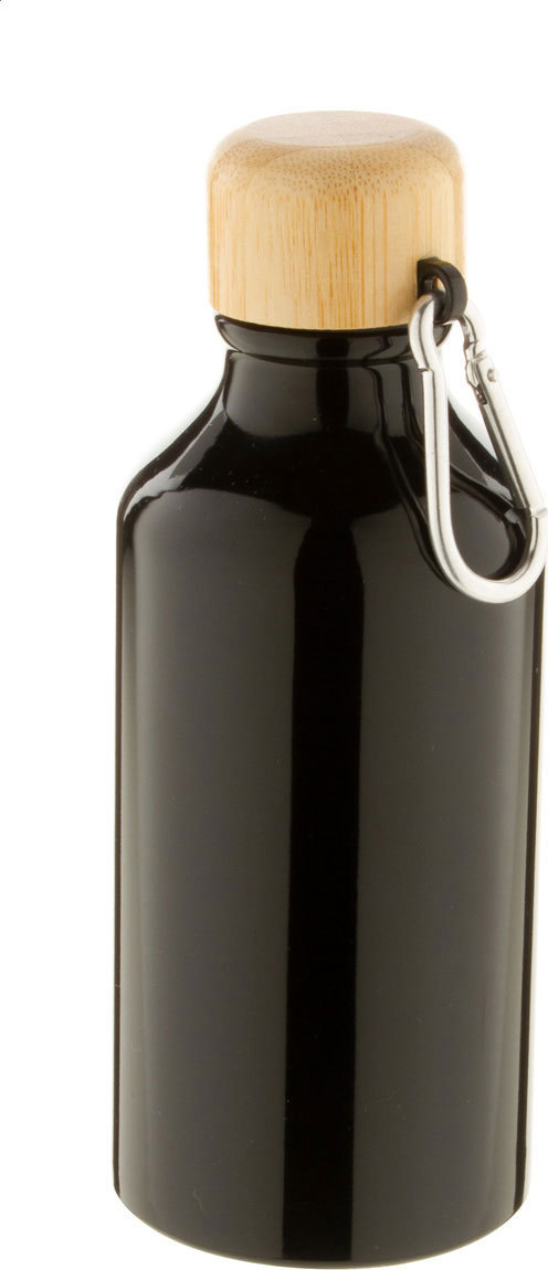 Hliníková láhev s bambusovým víčkem a karabinou, 400 ml.